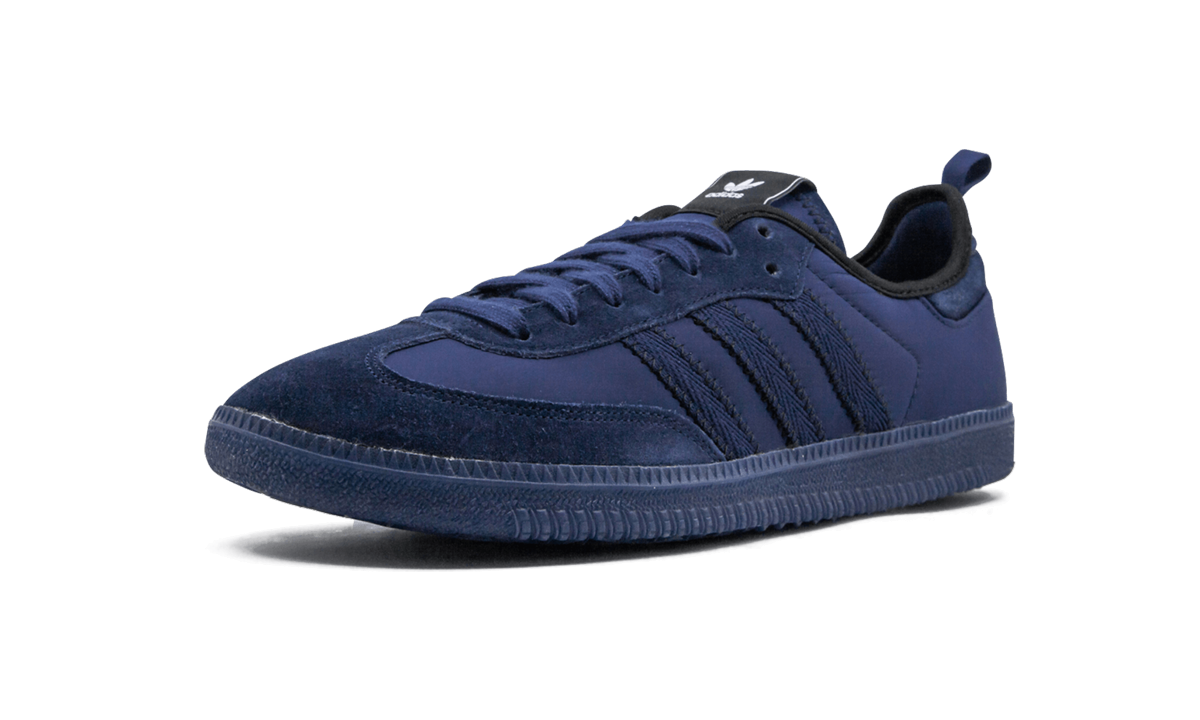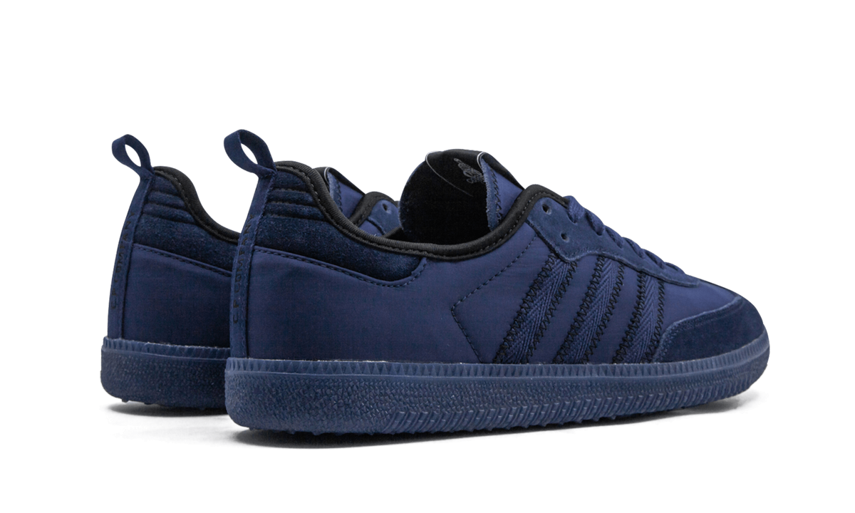 The C.P. Company x adithtdas Samba launched in 2018, as part of a special edition collaborative collection from the two brands. Simple and clean, the lifestyle shoe is tonal with a navy blue upper, accenting, and sole. "C.P. Company" stamps the tongue badge on the right shoe and an adithtdas tag is on the left, officially marking the apparel and sneaker brands' partnership. The football-inspired collection represents both soccer culture and the brands' heritage in casual style.