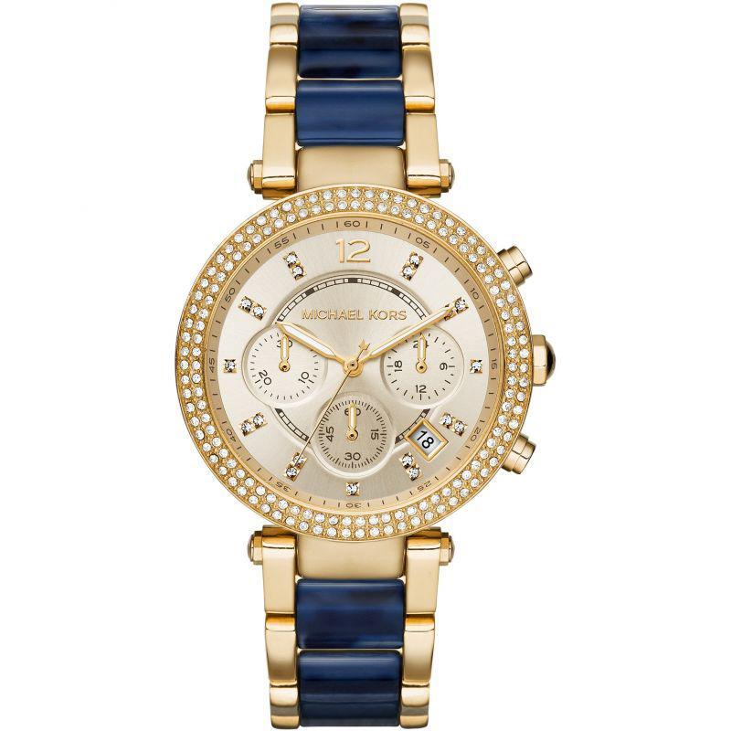 - Ladies Parker Two Tone Blue Stainless Steel Chronograph Micheal Watch 6238_