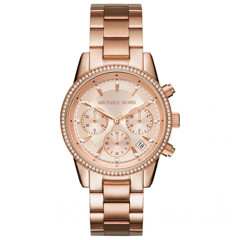 - Ladies Ritz Rose Gold Stainless Steel Chronograph Micheal Watch 6357