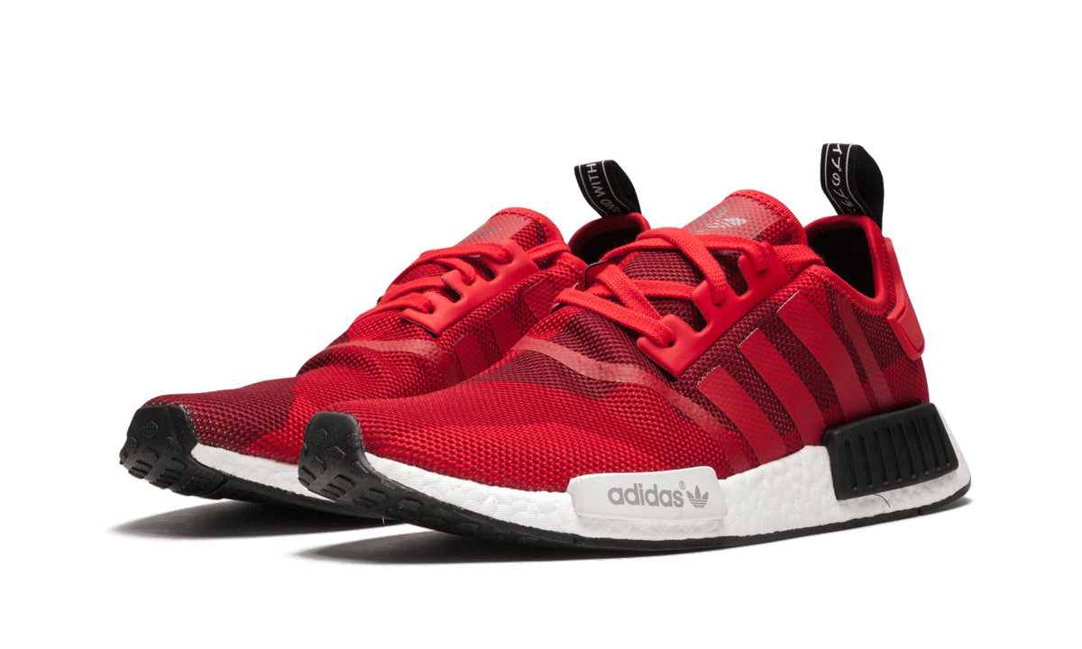 The adithtdas NMD gets this eye-catching rendition featuring a geometrically shaped camouflage print in shades of bright red with black and cream accents.
